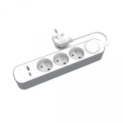 Przedłużacz stały 3x z włącznikiem oraz gniazdami USB A USB C 3m PS‑370WS+USBA+USBC/3 E W‑30001