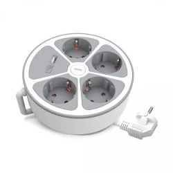 HELMO Przedłużacz stacja ładowania: 2x2P+Z USB A+C ładowarka indukcyjna z przewodem 2.0m 15 mm2 biały/grafitowy 049412
