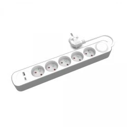 Przedłużacz stały 5x z włącznikiem oraz gniazdami USB A USB C 1,5m PS‑570WS+USBA+USBC/1,5 E W‑30003