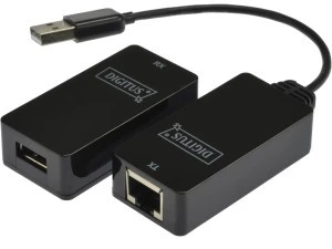 Extender USB umożliwia podłączenie do komputera urządzenia USB znajdującego się w odległości do 45m za pomocą kabla krosowego Cat 5, 5e lub Cat 6 (UTP, STP lub SFP).