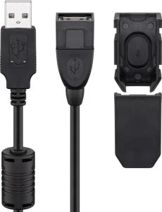 Przedłużacz USB 2.0 Hi‑Speed z klipsem zabezpieczającym, Czarny ‑ Długość kabla 2 m