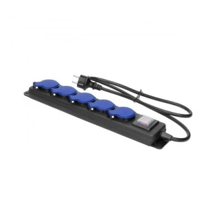 Wyposażony w 5 gniazd typu francuskiego 2P+Z które zapewniają bezpieczne podłączenie pięciu różnych narzędzi i urządzeń elektrycznych jednocześnie. Przedłużacz jest przeznaczony do pracy z napięciem znamionowym 230V, 50Hz oraz prądem znamionowym 16A i maksymalnym obciążeniem do 3680W.