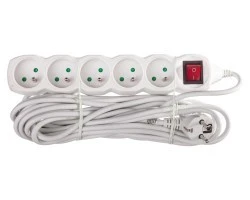 Decydując się na zakup odpowiedniego dla nas przedłużacza z całą pewnością należy zwrócić uwagę na materiał, jakiego użyto do jego wykonania, a także na parametry elektryczne, przy jakich pracuje ten model. Wartość prądu znamionowego jest równa 10A. Ten model został zrobiony ze szczególnego tworzywa termoplastycznego. Wyjątkowość tego materiału polega na tym, że nie przywiera on do szkła, metali, a także do innych tworzyw. Tworzywo zachowuje swoje wyjątkowe właściwości wyłącznie w temperaturze pokojowej. Warto również poznać wymiary tego modelu. Przekrój poprzeczny żył wynosi 1 mm2 A z kolei długość przewodu zasilającego jest równa 7 metrów. Ten model posiada także łącznie 5 gniazd. Każde z nich ma bolec uziemiający. Każde zostało również ustawione pod kątem. Ten model przedłużacza jest dostępny w uniwersalnym, białym kolorze.