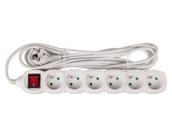 Ten model został wyposażony łącznie w 6 gniazd. Każde z nich ma bolec uziemiający. Każde z tych gniazd ustawiono również pod kątem. Ten model ma również praktyczny przełącznik włącz //wyłącz. Zaletą tego artykułu jest fakt, że został on wykonany z niezwykle trwałego tworzywa termoplastycznego w uniwersalnym, białym kolorze, co sprawia, że ten produkt nie będzie zakłócał wystroju pomieszczenia. Ponadto takie rodzaj tworzywa jest niezwykle odporny na ścieranie, a ponadto nie przywiera do szkła, metali oraz do innych tworzyw. Długość przewodu zasilającego jest równa 5 metrów. Przekrój poprzeczny żył wynosi 1 mm2. Natomiast prąd znamionowy wynosi 10A.