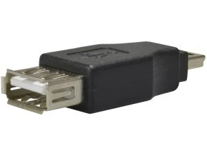 Adapter służy do zmiany wtyku USB A na miniUSB. Umożliwia połączenie komputera z urządzeniem wyposażonym w gniazdo miniUSB gdy posiadamy tylko kabel zakończony wtykiem USB.