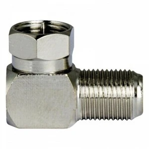 Adapter kątowy „F”, który pozwala na obrót o 90º w połączeniu „F”. Zazwyczaj stosowane do regulacji przedłużacza koncentrycznego „F”.