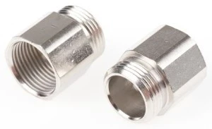 Złączki gwintowane ogólne. Niklowane mosiężne złączki gwintowane, używane do zamiany PG na gwinty metryczne lub do dostosowania się pomiędzy poszczególnymi gwintami. Idealne do zmiany pozycji gwintowanych w przyciskach, wyłącznikach krańcowych itp.