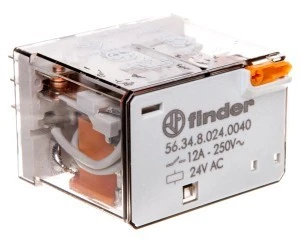 Przekaźnik 4P 12A 24V AC przycisk testujący, mechaniczny wskaźnik zadziałania 56.34.8.024.0040