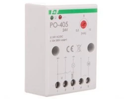 Podanie napięcia sterującego S na przekaźnik powoduje jego zadziałanie i załączenie napięcia na sterowanym odbiorniku. Po zaniku napięcia sterującego działanie odbiornika jest podtrzymywane przez czas podtrzymania t (nastawiany potencjometrem). Po czasie t wyłączenie sterowanego odbiornika nastąpi automatycznie. W przypadku ponownego podania napięcia sterującego S przed upływem nastawionego czasu przekaźnik realizuje swoją funkcje pracy od początku.