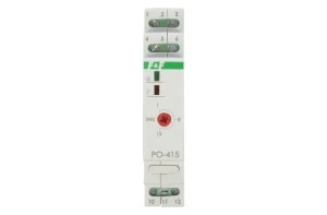 Przekaźniki czasowe z opóźnionym odpadaniem PO‑415 służą do podtrzymania zasilania sterowanego odbiornika przez określony czas po zaniku napięcia sterującego, np. w układach wentylacji łazienkowej, gdzie występuje podtrzymanie pracy wentylatora ‑ załączanego wraz z oświetleniem ‑ przez określony czas po wyłączeniu tegoż oświetlenia.
