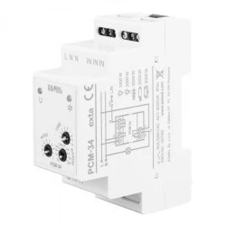 Przekaźnik czasowy PCM-34 to wielofunkcyjny przekaźnik czasowy realizujący jedną z dziesięciu funkcji w układach automatyki i sterowania. Wyzwolenie pracy urządzenia może być podyktowane pojawieniem się napięcia zasilania lub sygnału zewnętrznego podanego na wejście IN przekaźnika. Zastosowana w nim technologia umożliwia przełączanie styków przekaźnika i załączenie obciążeń przy przejściu sinusoidy napięciowej przez punkt zerowy (wartość chwilowa napięcia na wyjściu w momencie przełączenia przekaźnika wynosi 0 V w stosunku do potencjału neutralnego). Przekaźnik dokonuje wyłączenia obciążenia (zmiana położenia styków przekaźnika) w momencie przejścia sinusoidy prądowej przez punkt zerowy (wartość chwilowa płynącego prądu wynosi 0 A). Dzięki takiemu sterowaniu unikamy negatywnych efektów pojawiających się podczas procesu komutacji. Przekaźnik umożliwia podłączenie obciążeń LED dużej mocy, a także świetnie radzi sobie z obciążeniami indukcyjnościowymi. Ponieważ styki przekaźnika stanowią element elektromechaniczny, to konstrukcja pozbawiona jest wad występujących w przypadku konstrukcji półprzewodnikowych. Cechy urządzenia to: