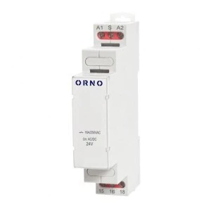 Jednofunkcyjny przekaźnik impulsowy, bistabilny to modułowe urządzenie, które odpowiada za sterowanie obwodem oświetleniowym w określonej funkcji czasu. Produkt jest przydatny zarówno w układach przemysłowych, jak i domowych. Jak sama nazwa wskazuje, głównym zmiennym parametrem urządzenia jest właśnie czas. Ten model realizuje jedną funkcję „włącz – wyłącz” i nie ma pamięci. Załączenie i wyłączenie realizowane są poprzez podanie impulsu na zestyku S. Przekaźnik może być zasilany napięciem stałym lub przemiennym 50/60 Hz o wartościach 20,4 - 27,6 V. Produkt przeznaczony jest do montażu na szynę DIN 35mm w położeniu dowolnym, a solidne zaczepienie gwarantują dwa zaczepy - górny i dolny. Montaż przewodów w zaciskach odbywa się za pomocą śruby uniwersalnej. Obciążalność 16A.
