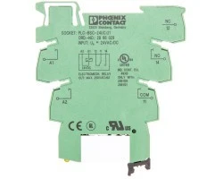 Interfejs PLC, składający się z podstawy PLC-BSC.../21 ze złączami śrubowymi i wtykowego przekaźnika miniaturowego ze stykiem prądowym, do montażu na szynie montażowej NS 35/7,5, 1 zestyk przełączny, napięcie wejściowe 24 V AC/DC