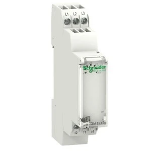Przekaźnik kontrolny prądowy wielofunkcyjny RM17-TT — zakres 183..528 V AC. rodzina produktów: Zelio Control - typ produktu: modułowe przekaźniki sterownicze i pomiarowe - typ przekaźnika: wielofunkcyjny przekaźnik sterujący - specjalne zastosowanie produktu: do 3-fazowego zasilania - nazwa przekaźnika: RM17TT - parametry monitorowane przez przekaźnik: kolejność faz, wykrywanie uszkodzenia fazy - zdolność łączeniowa w VA: 1250 VA. Zalety: Prostota sterowania. Prostota precyzja regulacji są gwarancją szybkiego i łatwego skonfigurowania. Przekaźniki te są w stanie zaspokoić wszelkie potrzeby dotyczące kontroli procesów oraz wyposażenia sieciowego.... Zastosowanie: -. Przemysł i budownictwo: tablice rozdzielcze do prostych maszyn., Rozruch i monitorowanie urządzeń do uzdatniania wody..