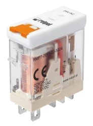 Przekaźniki miniaturowe 1P. Materiał styków: AgNi. Napięcie cewki 24 V AC. Wyposażenie standardowe: dioda sygnalizacyjna LED (czerwony AC, zielony DC), wskaźnik zadziałania mechaniczny, przycisk testujący czołowy z funkcja blokowania styków. Montaż: do gniazd wtykowych GZ71, GZP71