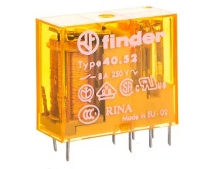 Miniaturowy przekaźnik serii 40 przeznaczony do montażu na płytce PCB, stosowany jako element przełączający w układach sterowania i automatyki. Model 40.52.8.012.0000 to dwupoleowy (2P) przekaźnik bistabilny z cewką zasilaną napięciem AC 12 V.