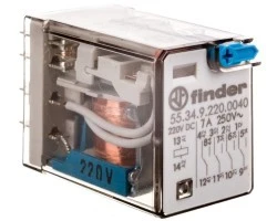 Przekaźnik miniaturowy 4P 7A 220V DC, przycisk testujący, mechaniczny wskaźnik zadziałania 55.34.9.220.0040