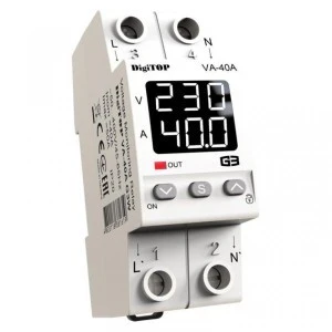 Przekaźnik napięciowy VA-40A G3W z kontrolą prądu przeznaczony jest do ochrony urządzeń elektrycznych i sprzętu gospodarstwa domowego przed niedopuszczalnymi wahaniami napięcia. Urządzenie w sposób ciągły analizuje napięcie sieciowe i w przypadku jego przekroczenia następuje wyłączenie podłączonych urządzeń, a obciążenie zostaje załączone automatycznie po powrocie napięcia do zadanego zakresu. Użytkownik ustawia wymaganą górną i dolną granicę napięcia oraz czas opóźnienia załączenia.