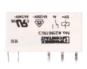 Wtykowy miniaturowy przekaźnik mocy, ze złoconym zestykiem wielowarstwowym, 1 zestyk przełączny, napięcie wejściowe 12 V DC