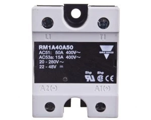 Przekaźnik półprzewodnikowy RM1 cechuje się załączaniem w zerze napięcia oraz parą tyrystorów w obwodzie wyjściowym mocy. Urządzenie jest wykorzystywane przede wszystkim w aplikacjach przemysłowych, gdzie pozwala na sterowanie obciążeniami rezystancyjnymi, indukcyjnymi, a także pojemnościowymi. Załączenie w przekaźniku półprzewodnikowym następuje w momencie przejścia napięcia przez zero, a jego wyłączenie odbywa się gdy wartość prądu osiągnie zero. Zadziałanie urządzenia jest sygnalizowane poprzez diodę LED. W przekaźniku półprzewodnikowym jednofazowym znamionowy prąd obciążenia w kategorii AC-1 jest równy 50 A. Z kolei, zakres napięcia pracy jest od 42 V do 440 V, a napięcie sterowania jest w przedziale od 20 V do 280 V. Częstotliwość sterowania, a także częstotliwość napięcia zasilania jest od 45 Hz do 65 Hz. Producentem przekaźnika półprzewodnikowego RM1A jest polska firma RELPOL, której produkty są stosowane w automatyce przemysłowej i energetycznej, energoelektronice, elektronice przemysłowej i użytkowej, telekomunikacji oraz w AGD.