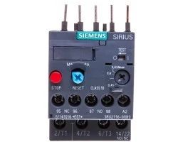 Przekaźnik termiczny z klasą wyzwalania 10 pochodzi z innowacyjnej linii SIRIUS zaprojektowanej przez markę SIEMENS, która swoje zastosowanie znajduje w przemysłowych systemach sterowania. Urządzenie służy do zabezpieczenia przed nadmiernym wzrostem temperatury, które zostało wywołane przeciążeniem, a także chroni odbiorniki przed zanikiem fazy oraz niesymetrią. Dodatkowo przekaźnik termiczny pozwala na kompensację temperatury z zakresu od -40°C do +60°C. Produkt został dostosowany zarówno do urządzeń jedno i trójfazowych zasilanych napięciem AC lub DC. W przypadku jednofazowych silników przekaźnik należy zmostkować poprzez połączenie szeregowe wszystkich torów. W urządzeniu nastawa prądu odbywa się w przedziale od 0,45 A do 0,63 A. Produkt został wykonany ze specjalnych materiałów, które są przyjazne dla środowiska, a także spełniają wszystkie międzynarodowe normy dotyczące bezpieczeństwa. Przekaźnik termiczny ma rozmiar S00 i posiada 1 styk pomocniczy rozwierny i 1 styk pomocniczy zwierny. Produkt montuje się bezpośrednio, a do obwodu głównego należy go podłączyć przy użyciu zacisków śrubowych.