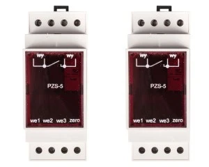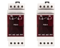 PZS –5 przekaźnik zdalnego sterowania siecią oświetlenia ulicznego w układzie kaskady. Podanie napięcia fazowego na dowolną liczbę wejść sterujących powoduje zamknięcie przejścia między zaciskami wyjściowymi. Między stroną wejściową a wyjściową jest pełna separacja galwaniczna.