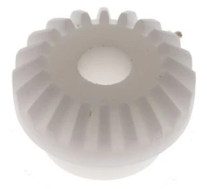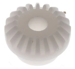 Delrin Miter Gears. Odlewane kopolimerowe przekładnie zębate układu acetal, zapewniające przełożenie skrzyni biegów 1:1. Wytrzymałość na rozciąganie 94N/mm ;sup> 2 ;/sup> Twardość (Rockwell R) 110-120 Kąt nachylenia 45°, kąt nacisku 49° 48' Liczba zębów 20