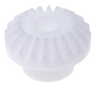 Delrin Miter Gears. Odlewane kopolimerowe przekładnie zębate układu acetal, zapewniające przełożenie skrzyni biegów 1:1. Wytrzymałość na rozciąganie 94N/mm ;sup> 2 ;/sup> Twardość (Rockwell R) 110-120 Kąt nachylenia 45°, kąt nacisku 49° 48' Liczba zębów 20