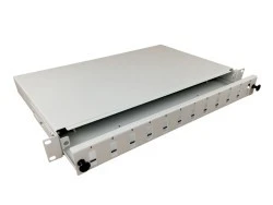 Panel światłowodowy z wysuwalną tacką do montażu w szafach i stojakach 19", 12 portów SC duplex, kolor szary.