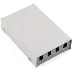Mini-przełącznica Telcoline została zaprojektowana do montażu naściennego z możliwością instalacji 4 adapterów typu SC Simplex lub LC Duplex.