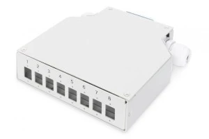 Przełącznica światłowodowa na szynę DIN, 8x LC duplex z tacką na spawy, szarygrey