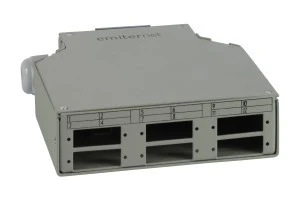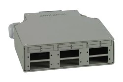Przełącznica światłowodowa przeznaczona jest do montażu na szynie DIN (TH 35). Posiada 6 otworów, wykonanych pod montaż adapterów SC Duplex (lub LC Quad). W komplecie z przełącznicą znajdują się dławiki kablowe oraz wewnątrz przewidziane jest miejsce na zabezpieczenie spawów.