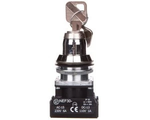 Przełącznik 2 położeniowy niestabilny klucz 30mm srebro 1Z 1R z samopowrotem NEF30TZbM W0‑NEF30‑TZBM XY