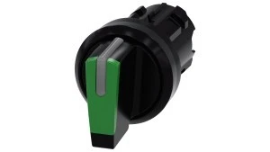 Przełącznik 3 pozycyjny 22mm czarny/zielony bez samopowrotu I‑O‑II możl podświetl tworzywo IP69k SIRIUS ACT 3SU1002‑2BL40‑0AA0