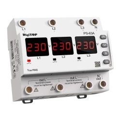Przełącznik faz PS-63A przeznaczony jest do zasilania przemysłowych i domowych odbiorców jednofazowych 220/230V 50Hz z jednej z faz sieci trójfazowej w celu zapewnienia zasilania najbardziej krytycznych urządzeń jednofazowych z fazy o najwyższej jakości i zabezpieczenia ich przed przepięciami lub podnapięciami.