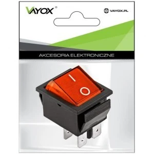 przełącznik IRS-201-1A; 2x2-pin, 2-poz.; ON-OFF, 20A 125VAC, 15A 250VAC, podświetlany kolor czerwony