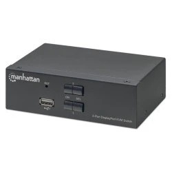 2-Portowy Przełącznik KVM DisplayPort 2x1 Manhattan 153546 to kompaktowe rozwiązanie umożliwiające dostęp oraz kontrolę dwóch komputerów wyposażonych w porty DP/USB przy użyciu jednego zestawu klawiatury, myszy oraz wyświetlacza. Dzięki dołączonym do zestawu kablom przyłączeniowym typu combo proces podłączenia jest niezwykle prosty i szybki oraz nie wymaga zakupu dodatkowych przewodów.
