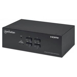 HDMI KVM Switch Manhattan 153539 – 4-Portowy Przełącznik KVM HDMI/USB 4x1 Dual-Monitor Video 4K*30Hz, Współdzielony Port USB 2.0