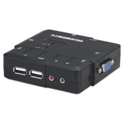 Manhattan 151252 - 2-Portowy przełącznik KVM VGA/USB 2x1 z obsługą audio/mikrofonu 3.5mm