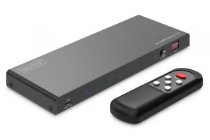 Przełącznik DIGITUS® 8K HDMI Switch, 4x1 oferuje dodatkowe złącza HDMI dla wyświetlacza wyjściowego - 4 źródła sygnału można podłączyć do ekranu za pomocą tylko 1 złącza HDMI. Sygnały audio można również oddzielić za pomocą złącza Toslink lub 3,5 mm stereo i odtwarzać oddzielnie. Wygodne przełączanie między źródłami sygnału za pomocą pilota zdalnego sterowania, na samym urządzeniu lub poprzez automatyczne wykrywanie.