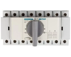 Przełącznik w układzie przełącznym I-0-II 4P 80A HIM408. Produkt solidny, dobrze wykonany, łatwy montaż.