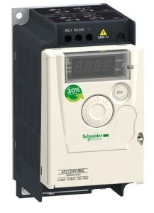 Altivar 12 to kompaktowy przemiennik częstotliwości przeznaczony do sterowania trójfazowymi silnikami asynchronicznymi o mocach od 0,18 kW do 4 kW. Urządzenie wyróżnia się prostą instalacją i uruchomieniem w trybie „Plug & Play”. Zostało zaprojektowane z myślą o niezawodności i intuicyjnej obsłudze, co czyni je idealnym rozwiązaniem dla producentów maszyn oraz instalatorów poszukujących małego, uniwersalnego napędu.