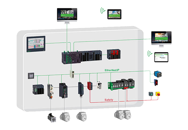 ATV340 oferuje funkcje, które ułatwiają projektowanie maszyn i skracają czas pracy inżynierskiej – od wyboru po uruchomienie. Bogaty zestaw interfejsów, liczne wejścia/wyjścia, Multi Ethernet, PTI/PTO, wbudowane wejścia enkodera oraz opcjonalne moduły zapewniają maksymalną elastyczność w projektowaniu architektury. Prosta konfiguracja master/slave i zintegrowane funkcje poprawiają wydajność aplikacji dźwigowych, systemów transportu i maszyn pakujących.