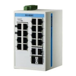 EKI-5626C to niezarządzalny switch przemysłowy firmy Advantech dedykowany do systemów sterowania oraz kontroli sieci. Aby ułatwić diagnostykę wprowadzono w nim protokół Modbus/TCP oraz SNMP, które umożliwiają kontrolę połączeń w sieci bez konieczności stosowania zaawansowanych funkcji switchy zarządzalnych. EKI-5626C został wyposażony w 16 portów Fast Ethernet oraz dwa gigabitowe porty Combo konfigurowalne jako SFP lub RJ-45. W zależności od dobranej wkładki mogą one wykorzystywać połączenia światłowodowe na dystansie do kilkudziesięciu kilometrów. Pierwsze dwa porty umożliwią transmisję danych z wysokim priorytetem QoS. Jest to szczególnie użyteczne w przypadku zastosowań wymagających wysokiej przepustowości, gdzie dane muszą być przesyłane w pierwszej kolejności. Ponadto, funkcja Loop Detection kontroluje zapętlenie danych w sieci i wyłącza zagrożone porty. Zabezpiecza to sieć przed zapychaniem łączy w przypadku wystąpienia dużej ilości pakietów typu broadcast. Ważną cechą switcha jest również niskie zużycie energii zgodne ze standardem Green Ethernet. Dzięki temu EKI automatycznie wyłącza nieużywane porty i dostosowuje moc sygnału do długości kabli. Do bezpośredniej komunikacji switch wykorzystuje protokoły SNMP i Modbus/TCP,co pozwala na bezpośredni odczyt stanu połączeń przez inżynierów w systemach SCADA lub dział IT.