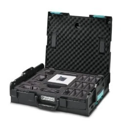 Przenośnika drukarka termotransferowa do oznaczników w formacie kasety z akcesoriami w praktycznej walizce. Drukarka jest przeznaczona do wykonywania nadruku zarówno na etykietach nacinanych, jak i materiałach nienacinanych o szerokości do 24 mm. W zestawie: walizka, akumulator, zasilacz z 4 adapterami, kabel USB, MM-EML (20X8)R C1 WH/BK, skrócona instrukcja