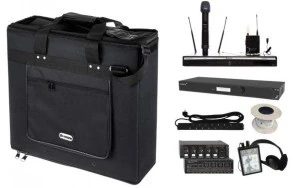 Profesjonalny, przenośny zestaw pętli indukcyjnej powierzchniowej przeznaczony do tymczasowego lub mobilnego wsparcia słuchu w salach o powierzchni do 150 m². Zestaw jest gotowy do pracy i idealny wszędzie tam, gdzie nie ma możliwości wykonania stałej instalacji systemu wspomagania słuchu.