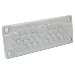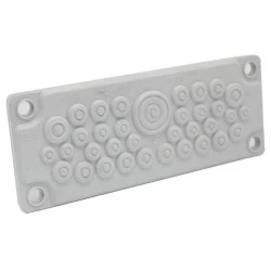 Przepust dławiący HTB-35 w kolorze szarym to specjalny przepust z tworzywa sztucznego z tłoczonym wzmocnieniem staowym i wstępnie przygotowanymi przepustami kablowymi o kompaktowej konstrukcji. Przeznaczony do przewodów o średnicy od 6 mm2 do 32 mm2. Maksymalna ilość podłączonych kabli wynosi 35. Zakres temperatury pracy od -40 °C do +100°C. Przepust dławiący posiada stopień ochrony IP 65.