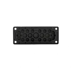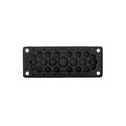 HTKC-25 (Typ FL21) IP65 służy do szczelnego i bezpiecznego wprowadzania kabli do urządzeń elektrycznych, koryt instalacyjnych bądź rozdzielnic. Przepust częściowo usztywnia przeprowadzany odcinek kabla, ograniczając możliwość uszkodzeń mechanicznych. Zabezpiecza izolację przewodu przed przecięciem. Dodatkowo utrudnia lub uniemożliwia wyrwanie przewodu z wnętrza urządzenia. Wykonany z wytrzymałego tworzywa sztucznego w kolorze czarnym. Produkt charakteryzuje się wysoką odpornością na poziomie IP65. Posiada 25 otworów podłączeniowych. Przepust jest odporny na temperatury w zakresie -40 - 100 °C.