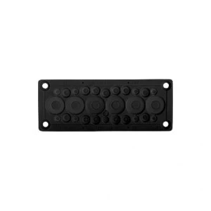 HTKC-28 (Typ FL21) IP65 służy do szczelnego i bezpiecznego wprowadzania kabli do urządzeń elektrycznych, koryt instalacyjnych bądź rozdzielnic. Przepust częściowo usztywnia przeprowadzany odcinek kabla, ograniczając możliwość uszkodzeń mechanicznych. Zabezpiecza izolację przewodu przed przecięciem. Dodatkowo utrudnia lub uniemożliwia wyrwanie przewodu z wnętrza urządzenia. Wykonany z wytrzymałego tworzywa sztucznego w kolorze czarnym. Produkt charakteryzuje się wysoką odpornością na poziomie IP65. Posiada 28 otworów podłączeniowych, dla przewodów o wymiarach 18 x 6 mm – 13 mm / 6 x 13 mm – 28 mm / 4 x 3 mm – 11 mm. Przepust jest odporny na temperatury w zakresie -40 - 100 °C.