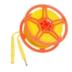 Przewód dedykowany do pomiarów rezystancji uziemienia. Zaprojektowany specjalnie do prac wykonywanych na zewnątrz - mają wzmocnioną odporność na uszkodzenia mechaniczne. Zakończony jest z jednej strony wtykiem bezpiecznym typu banan 4 mm, a z drugiej lamelką 4 mm pozwalającą na podłączenie do szpuli oraz bezpośrednio do sondy do wbijania w grunt.